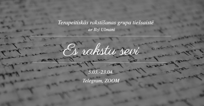 Terapeitiskās rakstīšanas grupa tiešsaistē “Es rakstu sevi” Ko mēs darīsim? Mēs rakstīsim. Dzeju, pasakas, vēstules, prozu. Dažādās rakstītā vārda formās satiekot sevi, stāstot savas dvēseles stāstu un dziedinoties caur to. […]